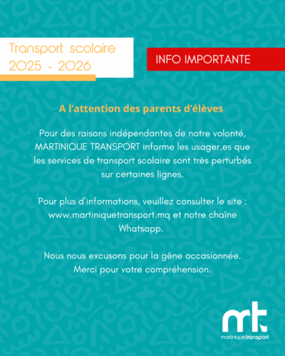 Des fausses cartes de transport "gratuites" sont proposées en ligne. Ne transmettez aucune information personnelle ! Martinique Transport et ses opérateurs ne proposent aucun abonnement gratuit via formulaire en ligne. Restez vigilants.